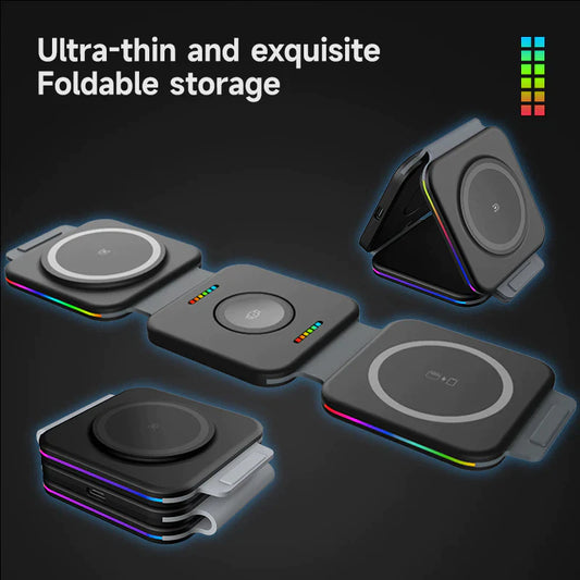 3 in 1 Foldable Magnetic Wireless Charger for Iphone 14 13 12 11 Pro Max Portable Wireless Charger for Apple Watch 8 7 6 Airpods